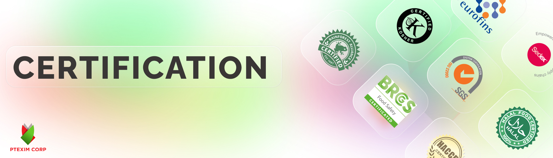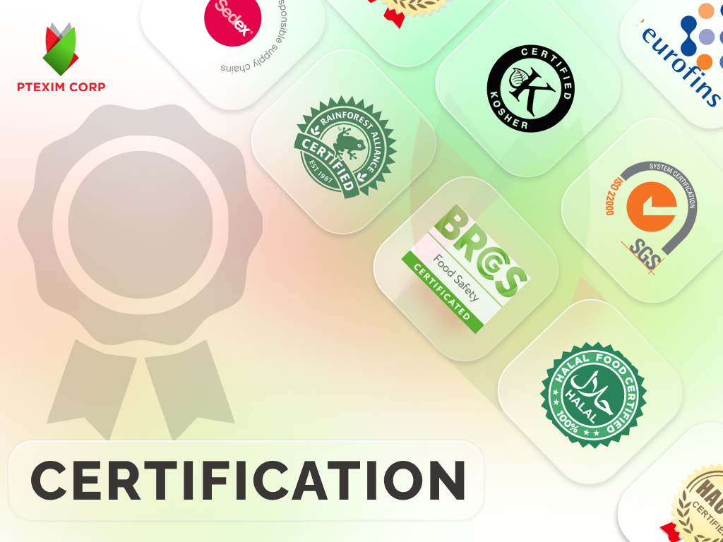 Our aim is the green – clean – sustainable element, PTEXIM focuses on safety, efficiency, which is good for consumers and community’s health. In actual fact, we’ve reached many international standards: BRC, UEBT, ISO, GMP, HACCP, Halal, Kosher, USDA Organic, EU Organic, FDA, VALIDATION OF STEAM STERILIZED SYSTEM, SEDEX, LEED Certification…